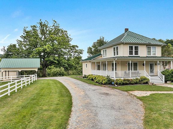 Perfect for train enthusiasts & equestrian lovers. The 4-BR, 2-story farmhouse sits on 3.06 acres, w/a formal foyer, spacious LR featuring a cozy FP, formal DR, & large open kitchen w/breakfast area. MBR Suite is located on the entry level & has its own FP, the laundry/mudroom is conveniently located nearby. Updated electric, 2-zone heat pump, windows, & metal roof. 2-car 24'x24' detached carport, 14'x14' Storage Building, + additional storage building w/covered porch. White vinyl fencing & pasture, an ideal location for horses or cattle. Covered wrap-around front/side porch, large rear porch perfect for relaxation or entertainment. There's public water/sewer PLUS private well for watering & backup. A perfect combination of style, comfort, & functionality-Ready for you to make it your own.
