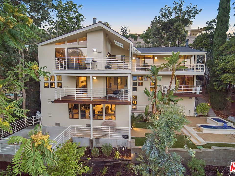 Striking Sherman Oaks hills contemporary facing unobstructed pristine views of snow-capped mountains and Valley lights. Large living/dining and family rooms with white oak hardwood floors and soaring ceilings all flooded with natural light. Gallery walls are perfect for large art pieces. Family room has amazing custom built-ins including wet bar and refrigerator. Cooks granite kitchen with stainless appliances opens to family and breakfast rooms. Great entertaining spaces, with gigantic rooms in this 5902 Sq Ft home with 5 bedrooms 5.5 baths on 3 levels. Extremely spacious primary suite with wood burning fireplace and wet bar, with its own private deck and sweeping views. Primary bath features an oversized spa bath and grand steam showerSuite also includes an intimate, paneled library (could also function as an office or nursery). Large screening room with 116 screen is adjacent to 3rd wet bar and fully equipped gym. Large 3 car garage with direct access. Stunning lighting fixtures, gym equipment, audio/video equipment & phone system all included in purchase price. Property is private, unassuming and refined. Super convenient with easy access to Beverly Glen, Coldwater Canyon, Mulholland Drive and 101/405 freeway.PLEASE VIEW THE 3D VIRTUAL TOUR FOR A COMPREHENSIVE VIEWING OF ALL THE ROOMS AND UPGRADES FOR YOURSELF! Easy to show.