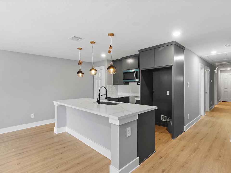 Bright open floor planSoaring high ceilingsSleek stainless-steel appliancesSpacious islandWalk-in closetGourmet kitchenDouble vanity
