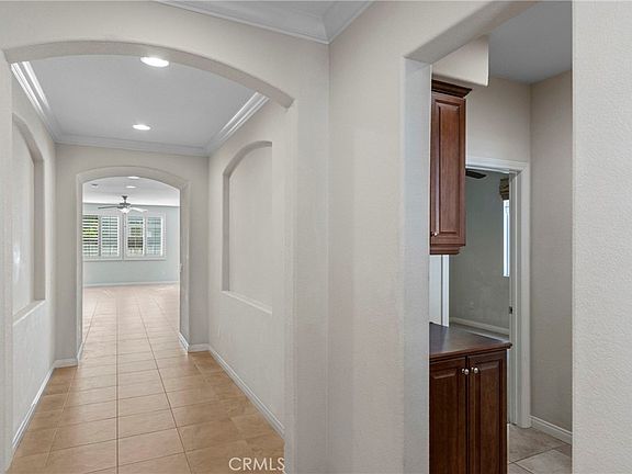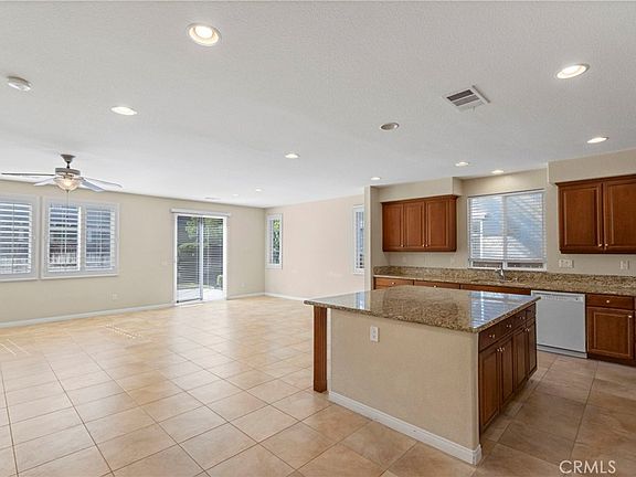Welcome to this sought-after single-story Spanish-style home in the highly desirable community of Harveston! From the moment you arrive, the charming arched windows across the front hint at the warmth and character found inside. Step into a bright, open floor plan designed for both comfort and functionality, with two spacious secondary bedrooms and a full bath conveniently located at the front of the home, while the private primary suite rests quietly at the back. The heart of the home is the expansive kitchen, boasting a large center island, loads of cabinetry, granite counters, and a walk-in pantry—perfect for the chef or entertainer. It seamlessly connects to the dining and living areas, making it an ideal space for gatherings of any size. Sliding patio doors lead you to the low-maintenance backyard, complete with a concrete patio, raised planting beds, mature shrubs, and palm trees, offering a tranquil space to relax, garden, or enjoy outdoor dining. Retreat to the oversized primary bedroom, featuring a ceiling fan, massive walk-in closet with mirrored French door, a spa-like soaker tub, dual sinks with extended counter space, and additional cabinetry for linens and storage. Elegant touches such as crown molding, shutters, and blinds add timeless character throughout the home, while the dedicated laundry room with cabinetry provides everyday convenience. The attached two-car garage offers additional storage and functionality. All of this is set within the incredible Harveston community, known for its picturesque 17-acre lake with walking trails, fishing, paddle boats, and picnic areas. Residents also enjoy access to a clubhouse, community pool, sports parks, and year-round events that make Harveston one of Temecula’s most sought-after neighborhoods. With shopping, dining, award-winning schools, easy freeway access, and world-renowned Temecula Wine Country just minutes away, this home offers the perfect blend of charm, convenience, and an unbeatable lifestyle.