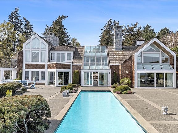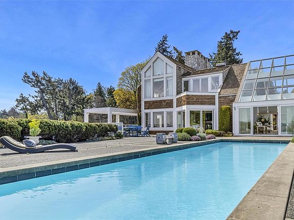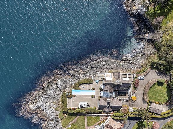 So picturesque it was once the setting of a Hollywood movie featuring Matthew McConaughey, this 6,044-foot 4-bed 6-bath residence stationed on an exceptional 1.01-acre waterfront lot with 370 feet of shoreline is ripe for renovation or redevelopment. Just 3 mins drive to UVic and 15 minutes from downtown Victoria, BC, this gated property offers ultimate privacy, 270-degree water and island views, expansive patios, an infinity pool, geo-thermal heated granite floors and more. Thanks to Bill 44, this generous waterfront property could accommodate multiple residences. Or, transform the existing luxury home by updating its contemporary Scandinavian design with a new metal roof and HardiePlank siding. Similarly, the existing residence’s north and south wings offer distinct living spaces that could be devoted to an owner’s suite, and quarters to house children / young adults, guests, or home support staff to allow the future owner to gracefully age in place. Bring your creative vision home!