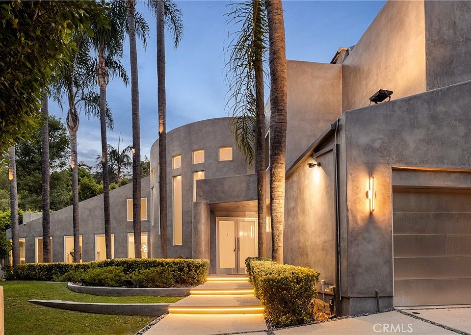 Gated and ultra-private, this 5-bedroom, 4.5-bath architectural retreat spans 4,398 sqft on a 10,733 sqft lot in prime Sherman Oaks, blending bold design with modern elegance. Defined by its sweeping curved facade, towering walls of glass, and soaring ceilings, the residence is finished with premium materials including Porcelanosa tile, imported travertine, white oak floors, and Cream Marfil Select marble. A dramatic foyer leads into expansive, light-filled living spaces, including a sophisticated formal living room, dining area, and family room with direct access to the backyard. The remodeled chef's kitchen is a standout, featuring sleek cabinetry, a waterfall island, new under-mount sink, Sub-Zero refrigerator, and professional-grade Viking appliances. Upstairs, the luxurious primary suite offers vaulted ceilings, a private balcony, a cozy sitting area with fireplace, a large walk-in closet, and a spa-like bathroom featuring an oversized shower and soaking tub. Multiple balconies and patios create seamless indoor-outdoor flow throughout the home. The lush entertainer's backyard boasts a sparkling saltwater pool with cascading waterfall, built-in Viking BBQ, and low-maintenance landscaping for ultimate relaxation and gatherings. Additional amenities include a 12-camera security and alarm system, neighborhood ADT patrol, new roof with skylights, and a new electrical panel. Located in the heart of Sherman Oaks - just minutes from upscale dining, shopping, hiking trails, top-rated schools, and quick freeway access - this home offers the perfect balance of privacy and convenience.