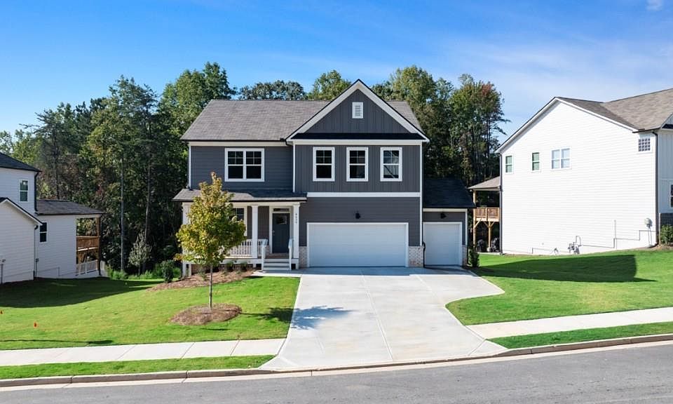 Boat slip included - Welcome to 4035 Peregrine Way, a new construction home on Lake Lanier in our Falcon Landing community! The lakeside location of this community gives residents the opportunity to enjoy the community dock and all Lake Lanier has to offer. The Hanover is a two-story floorplan that offers 4 bedrooms, 2.5 bathrooms, and a 2-car garage, plus an attached golf cart garage. As you enter this home, before reaching the main living area, you'll pass flex room that can be used as an office space with double doors and a spacious dining room. At the rear of the home you'll find the open-concept entertaining space comprised of a family room, dining area, and kitchen. The oversized family room will fit all of your furniture and then some, and the dining space allows for a table to gather around. In the kitchen you'll find quartz countertops, stainless-steel appliances, and an expansive corner pantry. An open loft space sits at the top of the stairs, a blank canvas for your needs, whether it be a second living area, game room, reading space, or anything else you can dream up. The primary suite consists of a large bedroom, en-suite bathroom with a double quartz vanity, separate tiled tub and shower, and a large walk-in closet. Three additional guest bedrooms, one full bathroom with double quartz vanity and tiled flooring, and the laundry room round out the second floor. Schedule an appointment to see all that 4035 Peregrine Way has to offer in Falcon Landing and what your view of Lake Lanier could be!