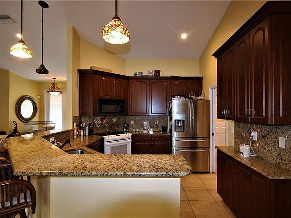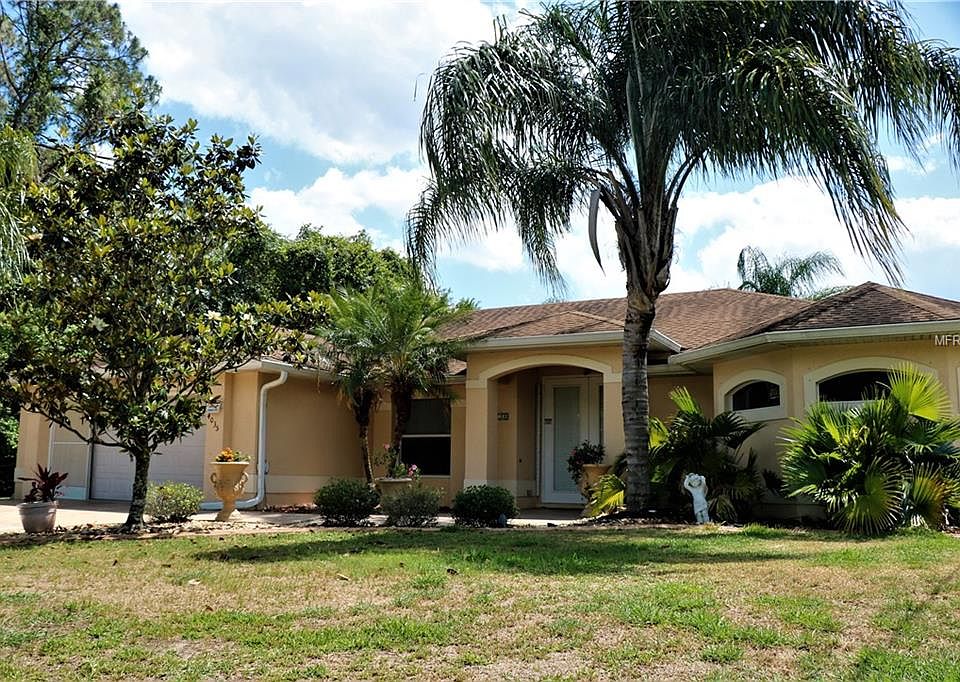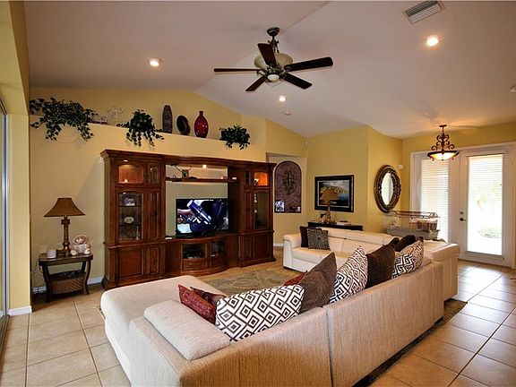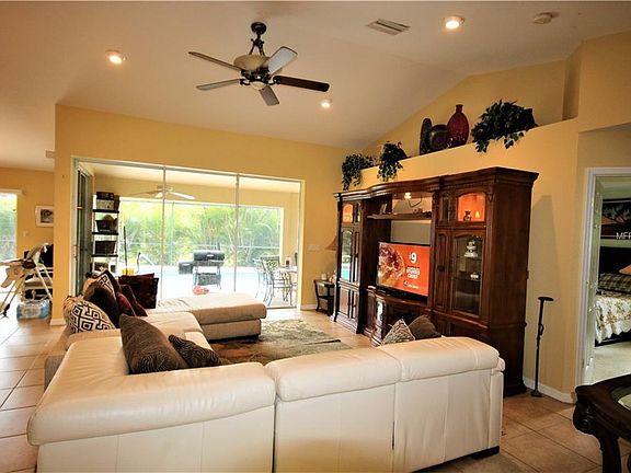 Spacious 3 bedroom, 2 bath, plus den/office, pool home. This former model home features is a great room floor plan with cozy breakfast nook just off the kitchen and lots of oversized ceramic tile in all the main living areas and baths and carpeting in all bedrooms. The kitchen is fully equiped with nice cabinetry, granite counters, breakfast bar and pantry. There is a huge covered and screened lanai (30x10) and the back yard is very private with no neighbors directly behind you. This is a split floor plan with a large master bedroom with sliders to the nice pool. The master bath is quite large with dual vanities, soaker tub and large walk-through roman shower. As an added feature this home has a special electric panel for you to plug in a gas generator (not included) and direct electricity to specific areas of the house in case of a power failure. And this home is not in a flood zone. The location is ideal with nearby shopping schools, park and very quick access to I-75. This home is being sold As-Is and could use a little TLC.