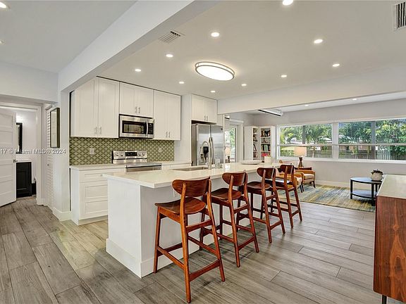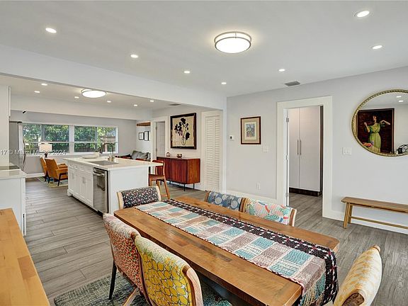 LITTLE GABLES 3/2 COMPLETELY RENOVATED in 2020 The renovation includes; a metal roof, hurricane impact windows & doors, 2 electrical panels, PVC plumbing, ductwork & complete LED lighting throughout + 2023 tankless water heater & 2022 AC, making this home safe & energy efficient. The renovation, with plank tile throughout, wraps around a spacious & bright kitchen with Corian counters & Samsung appliances, making it the perfect place for small gatherings or entertaining a crowd. Take the party outside to the backyard offering a gorgeous framed patio and room for a pool. Primary bed has built ins. Dual driveways & street availability allow for plenty of parking. Septic TY2022 maintained & recertified. 1,334sf house & 5,051sf lot per Appraisal. Pets on-premise, minimum 24-hour notice to show.