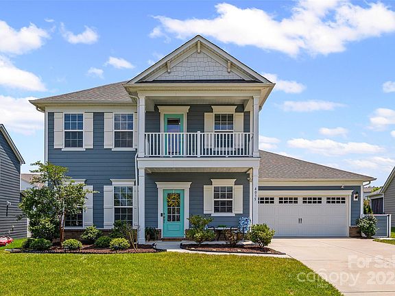 PRICE IMPROVEMENT! This North-facing McCullough home is a show stopper w/ it's dbl front porch & over 1/4 acre lot! As you make your way in on engineered wood floors that run throughout the downstairs common areas. The chef's kitchen is sure to impress w/ wooden hood, gas range, walk-in pantry, & flex w/ built-in drop zone. The open floor plan gives light throughout the extended great room & dining, & rounding off the downstairs is an office w/ french doors, 1/2 bath, AND guest bed w/ full bath. As you head upstairs you'll find a loft, 2 secondary beds & a bath, & primary suite w/ details incl trey ceiling & custom closet. No detail was spared w/ fans in all beds, finished garage w/ epoxy floors, molding details, whole home water softener system, & more! Outside you'll find an expansive patio (over 900 sqft) & large yard! McCullough is a lifestyle rich community w/ 2 pools, courts, dog park, near downtown Pineville, & 10 min from the light rail that takes you to uptown - welcome home!