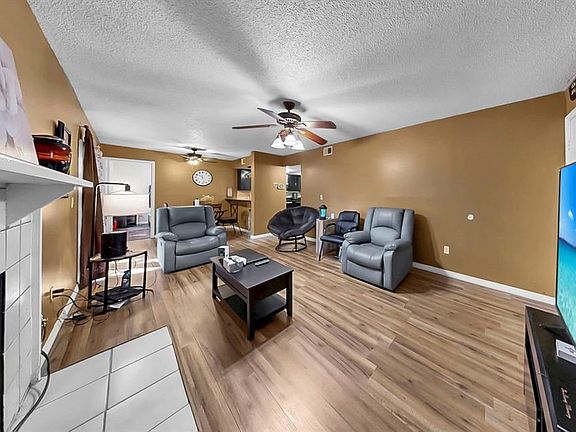 Experience comfort, style and convenience in this first-floor 2-bedroom, 2-bathroom condo located in the North Oaks community. Step inside to a bright layout featuring a cozy fireplace, perfect for relaxing evenings. The kitchen opens to the dining and living areas, creating a seamless flow for everyday living and entertaining. Enjoy your morning coffee or unwind in your private fenced-in outdoor area, offering extra space for peaceful outdoor lounging. The community provides resort-style amenities including a sparkling pool, tennis courts, and beautifully maintained green spaces. Located close to shopping, dining, major highways, and Tampa’s top attractions, this home makes it easy to enjoy everything the area has to offer. Schedule your showing today!