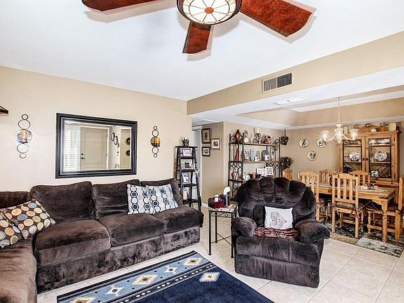 Beautiful spacious, single story town home with tile & carpet in all the right places, well taken care of, upgrades throughout. Spacious eat in kitchen features a plethora of custom cabinets, new granite counter tops, gorgeous back splash and all white appliances. Kitchen overlooks dining area and family room, perfect for holidays and get together. Large bedrooms with ample closet space including the master bedroom with walk in closet. Full master bathroom with walk in shower, and dual sinks. Back covered patio out with synthetic grass and private backyard. New dual paned windows, new front & security door, new roof, new blinds, newer refrigerator, new cabinets in garage, new garbage disposal and more! Easy to maintain landscaping in both the front and backyard. See attached list.