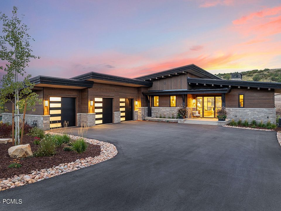 Welcome to this exquisite custom mountain modern retreat nestled in the prestigious Whispering Hawk neighborhood of Tuhaye. Completed in 2023 and perfectly situated on the 15th tee box of the Mark O'Meara Championship golf course, this impressive 4128-square-foot residence offers the ideal blend of luxury and comfort.