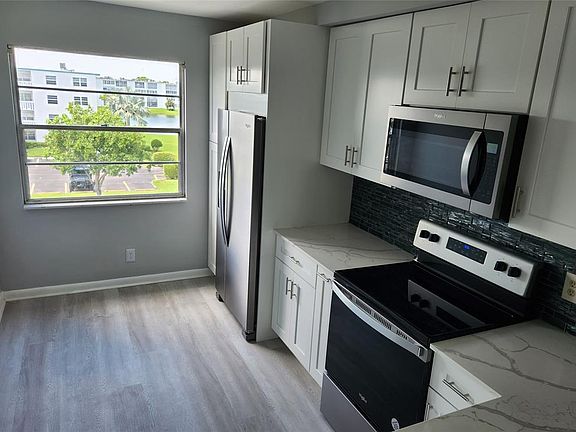Amazing, Bright 4th floor CORNER unit with Panoramic Water Views From every room is Finally available for sale! This 2 bedroom, 2 full baths unit features a New Modern Kitchen, New Whirlpool Suite Stainless steel appliances, Glass-Ceramic back-splash, granite counter-tops, 2 Brand new bathrooms with all the modern finishes and touches, New flooring throughout, all new Lighting and no popcorn ceilings. The Best Water-Views in the Community! A Rare opportunity, which is a must see! Steps to the pool. Century village is a Resort style active adult 55+ community with numerous amenities and activities. This Gated community features an award winning Clubhouse with a Gym, Olympic size Pool, Movie Theater and Shuttle service and more. Great investment, Can be rented right away!