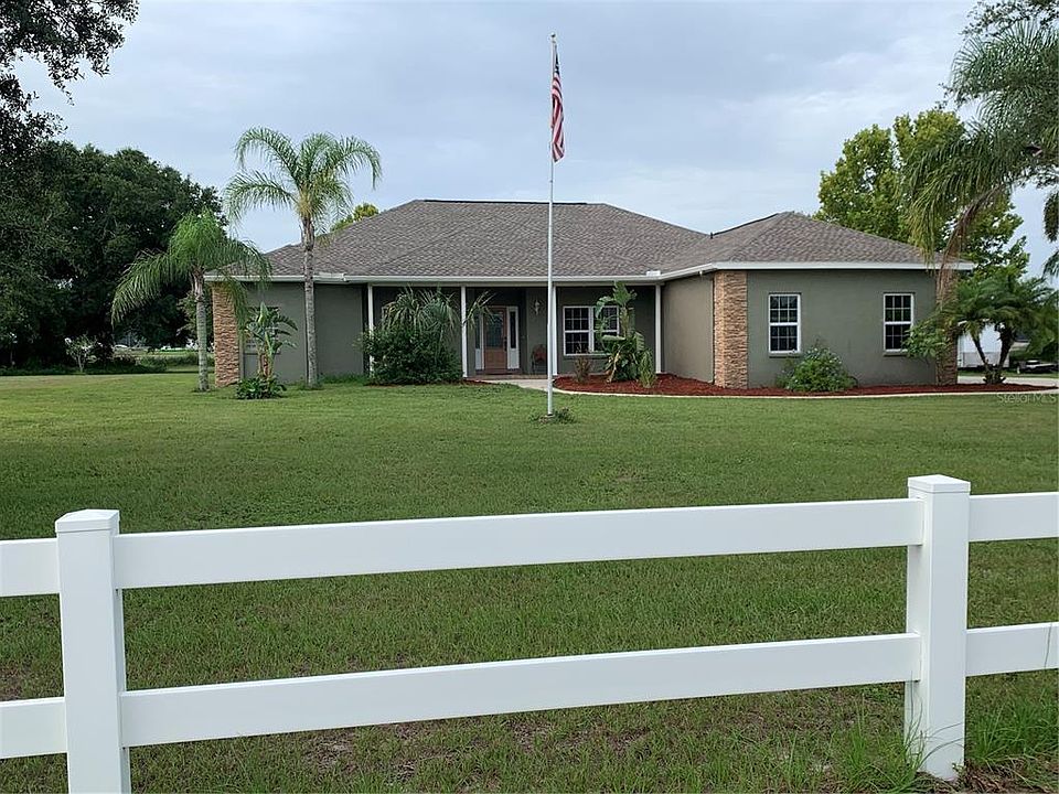 Huge price reduction. If you are looking for a home in the country then look no further. This 4 bedroom 2 bath 2 car garage home has been meticulously taken care of. The roof was replaced in December 2022, Water heater May 2023 exterior painted 2022. As you enter the front door notice the big tiled front porch where you can sit and relax in your rockers. Formal dining room is at the front of the home with a view of the huge front yard that has a vinyl fence. Family room is a nice size with a tray ceiling, wood flooring and sliding doors leading out to the lanai. The 4th bedroom which is being used as an office also features wood flooring. The Kitchen is a chefs dream with plenty of cabinets and counter space. Big pantry, Island, stainless steel appliances of which the stove is brand new. All the appliances are staying with the home including the washer and dryer. There is an eat in area off the kitchen which features a big picturesque window and French doors leading to the lanai. Tile flooring in the kitchen continues into the guest hallway where you will find two more bedrooms. The 2nd bedroom has a double closet. All bedrooms feature ceiling fans. The guest bath has built in cupboards and a door leading out to the lanai. Inside Laundry room which has a laundry sink and a double closet. Split bedroom plan with the Master bedroom featuring French doors leading out to the lanai. Big Walk in closet and the Master bath has a Jet tub and a big walk in shower. The Lanai is wonderful with tiled flooring, ceiling fan and a great view out to the vast back yard. There is a dog run assembled in the yard but can be removed. The flag pole in the front yard stays with the home. Garage was painted July 2023. The home is very private and has plenty of space on the acre+ land for your animals, toys and entertaining.