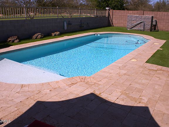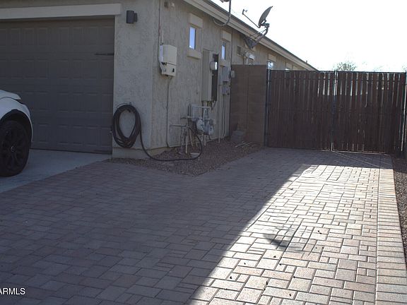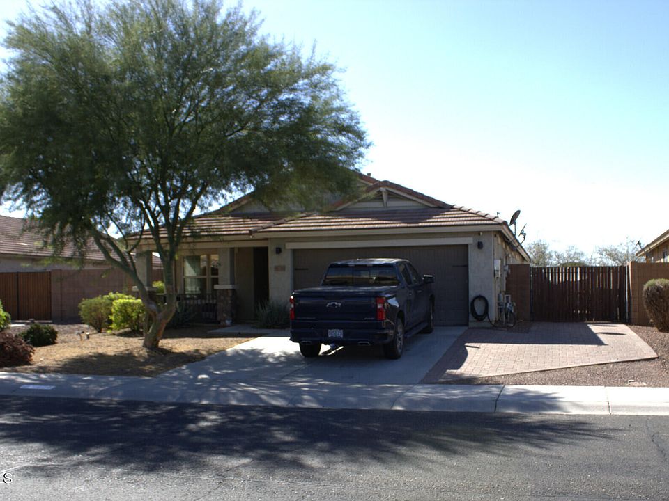 This charming single-family home in Goodyear, AZ was built in 2014 and boasts a spacious 1,739 sq.ft. of finished living space. The split design allows for privacy and function for family or guests. The master bath has a step in shower, dual sinks, a large linen closet, walk-in closet and separate stool area. The modern design and open floor plan create a welcoming atmosphere, perfect for entertaining guests or relaxing with family. The kitchen includes a large double door pantry, cabinet organization and beautiful granite countertops. The fully owned solar system provides for low electric cost. The large backyard features a beautiful in-ground pool with auto filter and cleaner as well as a built in BBQ and bar. There is a paver extension on the driveway and an RV gate to access additional storage along the side of the home. Located in a desirable neighborhood, this property is conveniently situated near shopping, dining, and entertainment options. Don't miss out on the opportunity to make this house your home!.