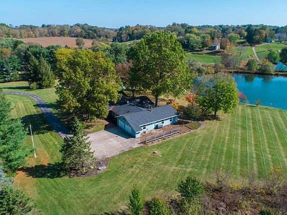 As you travel down the winding driveway you will discover the property that you have been looking fo,r and country living at its best! This lovely brick and cedar ranch, nestled within the trees, is situated on over 9 acres with a large stocked lake, and includes open land, with pine trees adding to the beauty. This 3 bedroom 2 bath home has been enhanced with many recent updates such as newer windows, sliders, front door, and freshly painted throughout. A nice size kitchen with stainless appliances and bay window opens up to a hearth room area with a warm and inviting brick fireplace and a barn wood wall adding to the ambiance. This area, as well as a spacious family room opens up to a beautiful all season, vaulted sunroom with walls of windows, providing outstanding views of the pond and wooded area in the distance. This home provides a two car garage and has an additional two car bay area which can be used for extra cars or toys, as well as a workshop area. There is a convenient large paved area by the garage. The roof has 50 year shingles, new gutters and guards and was replaced in 2014. Hot water tank, ac and furnace motor are recent updates. Enjoy the beauty of this home and gorgeous property located in the fabulous Highland school district. A home warranty is being offered.