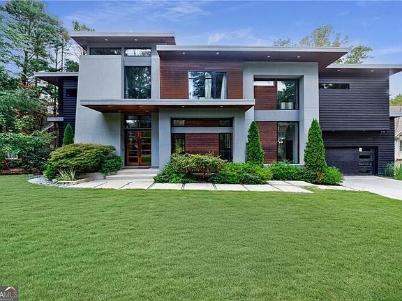 Tucked away on a quiet, tree-lined street in the heart of Buckhead, this exceptional modern residence sits on a private and expansive 0.83+/-acre lot-just minutes from top-rated schools, premier shopping, PATH 400, and all that Atlanta has to offer. From the moment you enter, the home captivates with its light-filled, open-concept main level, soaring ceilings, and clean, contemporary lines. The spacious great room seamlessly flows into a stunning chef's kitchen, featuring a dramatic quartz waterfall island, top-of-the-line Miele and Sub-Zero appliances, custom soft-close cabinetry, and double ovens, including a steam oven. The main level offers a formal dining room, a dedicated home office, and a private guest suite with a full bath. A spacious two-car garage with soaring 16-foot ceilings is also located on this level, the garage already has an indoor basketball hoop but could also be transformed into a car lift system, making it a perfect fit for automotive enthusiasts or collectors. The two car garage is complete with two electric car chargers. Another feature of the home is a total of seven electric shades throughout the house, the electric shades on the main living area doors can remain open while keeping out the sun, insects etc. The two electric shades on the covered outdoor deck on the main level can transform the space from an open-air setting to a fully enclosed screened porch - a truly impressive and versatile feature. A modern staircase leads to the upper level, where you'll find three generously sized en-suite bedrooms, plus a versatile bonus room ideal as a second office or a fourth upstairs bedroom. The primary suite is a true retreat with a spacious walk-in closet and a luxurious spa-inspired bathroom, complete with a steam shower and Japanese insulated soaking tub-perfect for hot/cold plunge therapy. The finished terrace level includes a guest bedroom, home gym, media room, and an oversized single garage-an ideal setup for an au pair or in-law suite with private exterior access. Each level of the home offers seamless indoor-outdoor living, with over 2,000 square feet of deck and patio space. Step outside to your resort-style backyard oasis, where you'll find a breathtaking infinity-edge pool with waterfalls, integrated spa, fire pit, and a level lawn-perfect for play, entertaining, or simply relaxing in total privacy. Designed with sustainability and quality in mind, this home features a solar array with battery backup, spray foam insulation, and energy-efficient windows for optimal comfort and efficiency. Premium materials include a durable TPO roof, IPE wood cladding and decking, modern solid wood doors, architectural hard plank, and stucco exterior-blending cutting-edge design with timeless craftsmanship.