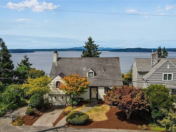 Abundant original charm in this 1933 built home with colorful tiled bathroom floors, to beam and coved ceilings. Splendid Sound and Olympic Mountain Views from the main living areas. Upstairs master bedroom with updated bath and view balcony. Two additional bedrooms upstairs and full bath. Spacious living room with a grand fireplace. Dining room facing west to glorious sunsets. The lower vacant lot will have a view covenant on title to protect view of subject property.
