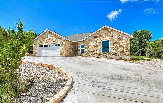 2020 built beautiful one story has tons of upgrades you wont find in other volume builders homes. Open kitchen living and breakfast. Beautiful kitchen with Stainless and Glass hood and upgraded granite counter tops with glass tile back splash and white stone accent. Large Master with double-vanity bath and separate shower, 2-car garage & covered patio. Iron fenced in yard. Beautiful rockscaped yard with privacy fences! Across the street from Lago Vista golf course hole number four. Golf cart community! Lago Vista amenities including clubhouse, seven waterfront parks, boat ramp, golf & tennis plus the Balcones Canyonlands.