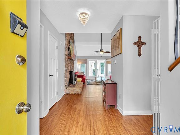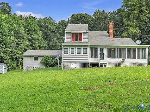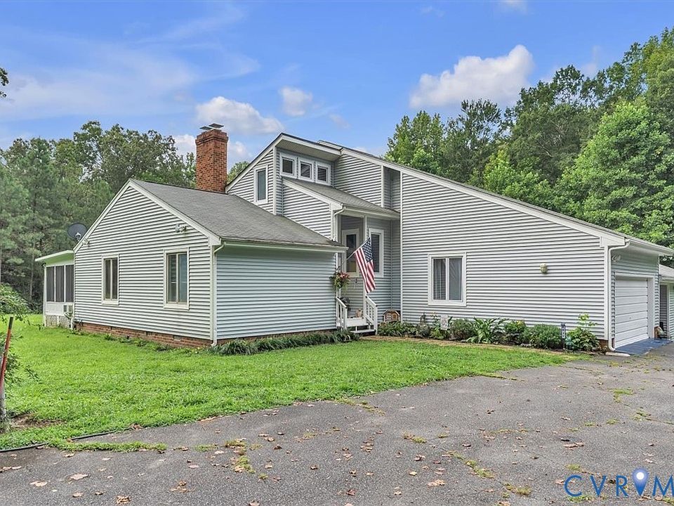 Price Reduced! BEAUTIFUL 5.42 ACERS!!! Stunningly dramatic contemporary situated on lot with both open space and trees. A lovely creek runs at the base of the hill on the right side of this home. The location is perfect as it is close to downtown, interstates, airport, shopping, and Williamsburg. This very quiet, serene setting offer a respite for all who live or visit here. The Foyer, Great Room and Loft all share a vaulted, beamed ceiling giving a most welcome greeting home. The first level has new LVP waterproof flooring. The Great Room has a floor to ceiling stone fireplace and French doors leading to an inviting sunroom. A Formal Dining Room opens to the GR, Kitchen and French doors lead to the many windowed Den or office. California Redwood Cabinets, Granite Countertops, a pretty Backsplash, eat-in area or coffee bar, a pantry complete the spacious kitchen. The stainless steel appliances remain. The first floor primary bedroom has its own brick FP, is large, and has french doors leading to the sunroom, too, The primary bathroom and Half Bath have been renovated. Upstairs has 2 nice sized bedrooms, a renovated full bath and a Loft. A 2 and 1/2 car attached garage, 2 sheds, and breezeway leading to the Rec Room or Man Cave complete this awesome property. The house has a whole house generator!!! The total SF is 2705 including the finished Rec Room. Septic pumped 9/22/2025.