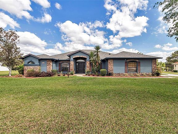 Located in the exclusive gated community of The Arbors, this stunning concrete block stucco with stacked stone accents 5-bedroom, 3-bath home offers exceptional craftsmanship and custom features throughout. Situated on a ¾-acre lot with an irrigation system, this property combines elegance, comfort, and functionality in one impressive package. Step inside to find real cherry hardwood floors, vaulted ceilings, and an open floor plan designed for modern living. The home features two spacious living areas, perfect for entertaining or relaxing. The chef’s kitchen opens seamlessly to the main living space, creating the ideal flow for gatherings.The spacious kitchen is the focal point of the home overlooking both living areas and features custom cabinets, stainless steel appliances, granite countertops and oversized peninsula island with room for several barstools. The primary suite provides a true retreat with a sitting room, spa-like bath, and generous walk-in closet. One of the additional bedrooms is currently used as a home office and located near primary, offering flexibility for your lifestyle needs. 3 additional bedrooms are located on opposite of home featured as a split bedroom plan. Enjoy outdoor living on the oversized patio, with plenty of room to add a pool or fenced backyard to create your own private oasis. The side-entry garage adds both convenience and curb appeal. Extended driveway as well for easy backing out. Experience luxury living in one of the area’s most desirable gated communities — The Arbors.