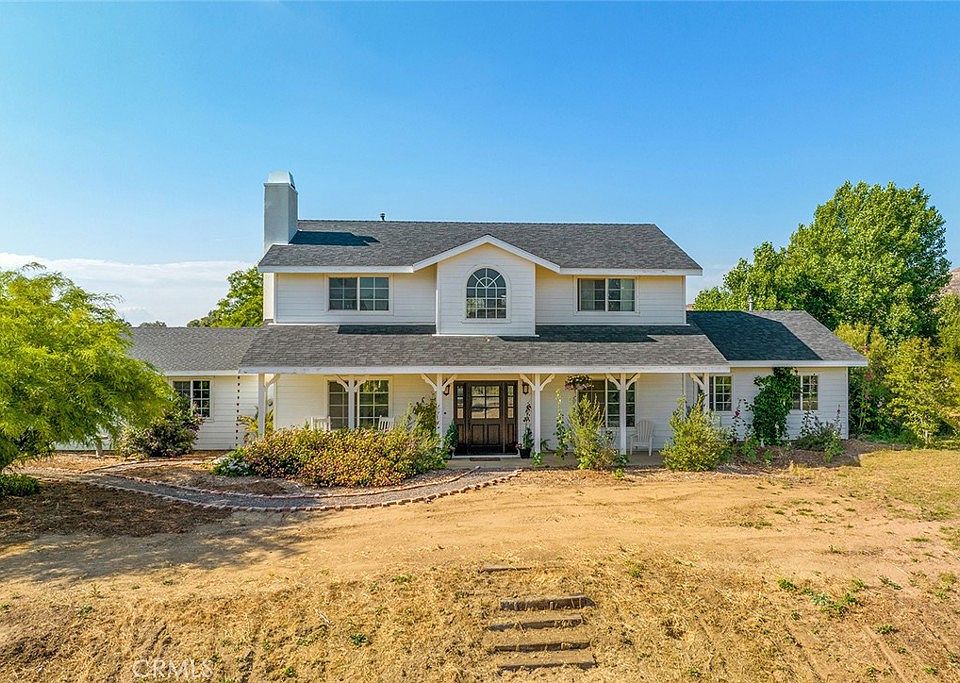 MOTIVATED SELLER! Country style 2-story farmhouse built in 2015, with 5 bedrooms and 3.5 baths on 2.86 acres with A-1 zoning offers plenty of space and amenities.The main level of the farmhouse includes a spacious Main Suite with its own bathroom, providing convenience and privacy. Additionally, having the laundry room on the main floor adds to the convenience of daily living. On the upper level, you will find four bedrooms and two full bathrooms. The bathrooms feature dual sinks, allowing for more efficient use of the space. The farmhouse is adorned with custom cabinetry throughout, providing ample storage options and a unique aesthetic. The quartz countertops add a touch of elegance and durability to the kitchen and bathrooms. The wood-burning fireplace adds warmth and ambiance to the living space, creating a cozy atmosphere for relaxation and gatherings. Outside the property offers several outdoor features, including a chicken coop for those interested in raising chickens, a large pond with backyard stream that adds to the natural beauty of the landscape. The orchard has fruit and nut producing trees including apple, pear, pomegranate, nectarine, . The lush backyard picnic area provides a perfect spot for outdoor dining and recreation. The views from the covered front porch are spectacular along with your kitchen view.