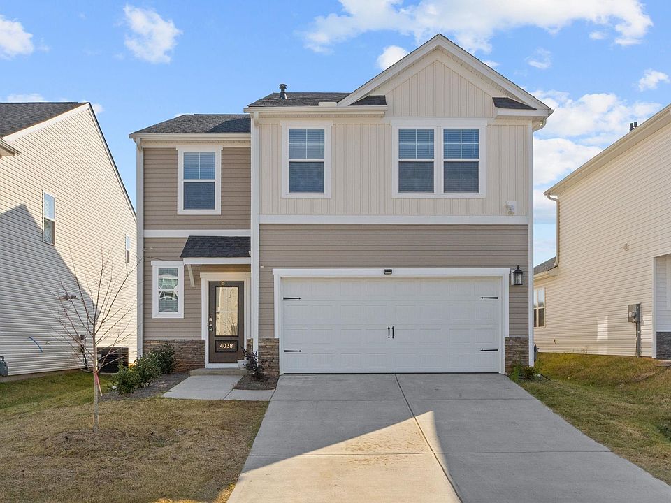 Welcome to 4038 Bromfield Way! This 4 bedroom, 2.5 bathroom + office has 2,500 sqft and a 2 car attached garage and is priced UNDER 300K. This 2023 build is located in Ashwood Meadows, which is in its final phase of selling and no longer has this larger floor plan available—so this is an opportunity you don’t want to miss! The open floor plan includes living room, dining space, and kitchen. The eat-in kitchen features a center island, white cabinetry, granite countertops, stainless steel appliances. Primary bedroom on main level with walk-in closet, trey ceiling, and ensuite with double vanity and shower. On the main level you’ll also find powder room, walk-in laundry, multiple storage closets, and access to the privacy fenced backyard with patio space. The second story, centered around a family/rec room has an additional 3 bedrooms, all with walk-in closets, full bathroom, and a cozy room that would be a perfect home office. Don’t miss your chance to see this spacious, Boiling Springs build—schedule your appointment today!