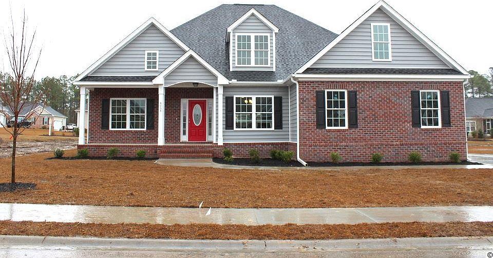 This popular open floor plan has 3 bedrooms which are split for privacy. Relaxing 20 ft long front porch, wide formal entry foyer, spacious living room with high vaulted ceiling, ceiling fan with light, a wall of windows and glass sliding door opening onto the 23 x 10 patio, and 14 x 11 covered rear porch. LVT plank flooring extends thru the foyer, dining room, living room, kitchen and halls to bedrooms. RFS ultra fine stone 12"x24" tile flooring is in master bathroom, guest bathroom, and laundry room. The kitchen which opens into the dining area has bead board gray painted cabinets with crown molding and knobs, single bowl sink, quartz counter tops, custom black stainless steel appliances. Private master bedroom has a tray ceiling with ceiling fan with light. Large master bath with double vanity, garden tub plus walk-in shower and separate commode room. Large 10'x6' master closet. Spacious guest bedrooms and guest bath and linen closet are on the opposite side of house. Pool/Hot tub outlet added to the rear patio and additional outlets in the house. Side entry garage 22 x 22 finished and painted with automatic door opener, mop sink, and pull down stairs to attic storage. Lawn sprinkler system. Smooth ceilings, RB3 window and door casings, 5 1/4 baseboards, recessed lights, sodded and landscaped yards. Close to downtown Conway, Riverwalk Park, great dining, shopping, and within 25 minutes of the beach and excitement of Myrtle Beach. Video is for illustrative purposes only and may be of similar house built elsewhere. Square footage is approximate and not guaranteed. Buyer is responsible for verification.