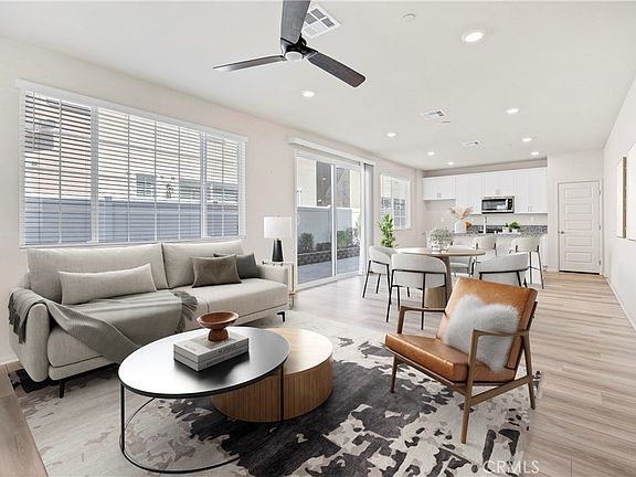 Welcome to this beautiful home in the desirable community of Heirloom Farms in Temecula. Featuring owned solar, this 3-bedroom, 2.5-bath residence combines modern finishes with low-maintenance living. Inside, you’ll find LVP flooring throughout the main level and cozy carpet upstairs. The open kitchen is beautifully appointed with white shaker cabinets, granite countertops, stainless steel appliances, and recessed lighting, making it the heart of the home. The layout is enhanced with pre-wiring for ceiling fans and a tankless water heater for added efficiency. Upstairs, the primary suite offers a relaxing retreat with dual sinks, quartz countertops, and a spacious walk-in closet. Two additional bedrooms and the conveniently located upstairs laundry room provide everyday comfort and functionality. The backyard has been thoughtfully customized with concrete hardscaping, charming planters, and a drip irrigation system, perfect for relaxing or entertaining. Located just steps from the community pool and clubhouse, this home offers both comfort and convenience. Enjoy easy access to freeways, shopping, dining, and Temecula’s wine country, all while benefiting from a low HOA.
