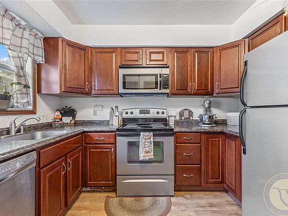 Welcome to this inviting two-bedroom, one-bath condo offering comfort, convenience and a low-maintenance lifestyle. The main level features a bright and open kitchen and living area that flow seamlessly together — perfect for everyday living and entertaining. Upstairs, you’ll find two spacious bedrooms and a full bath, providing a comfortable retreat from the main living area. Step outside to your private, fenced patio — ideal for relaxing, gardening, or hosting a summer barbecue. This home also includes a storage shed for extra space, underground sprinklers for easy lawn care, and two designated parking spots for added convenience. Located in a convenient area close to shopping, dining, and schools, this condo offers the perfect blend of comfort and practicality.