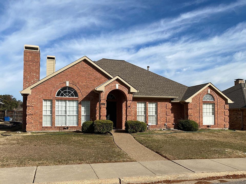 Gorgeous single-story, custom home with great floor plan, beautifully updated kitchen, vaulted ceilings, skylights, 2-inch blinds, hall cedar closet & rich flooring. Main living has tall ceiling, fireplace & lots of light. Beautifully updated kitchen with extensive granite counters, opens to den & has fireplace view - definitely the social hub of the house. Lovely primary suite has vaulted ceiling; bath with granite counters, 2 sinks, garden tub, separate shower, private toilet, walk-in closet & great lighting. Spacious secondary bedrooms with generous closet space - either would make a great home office. Utility has sink, cabinets and window. Large back yard with patio & wood fence. Great access to Tollways. Great place to call home. Renter responsible for all utilities. No smoking.