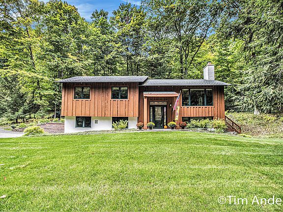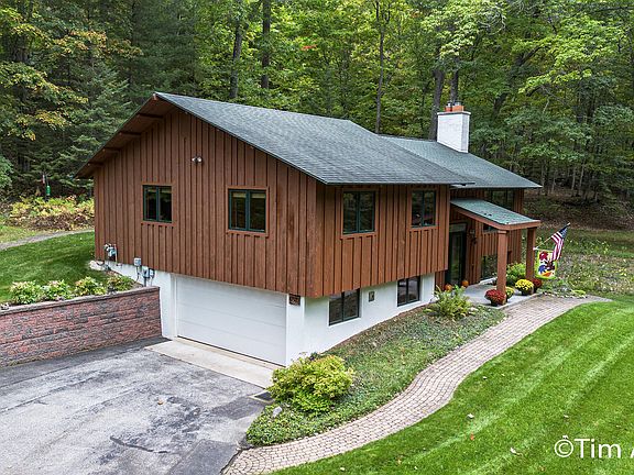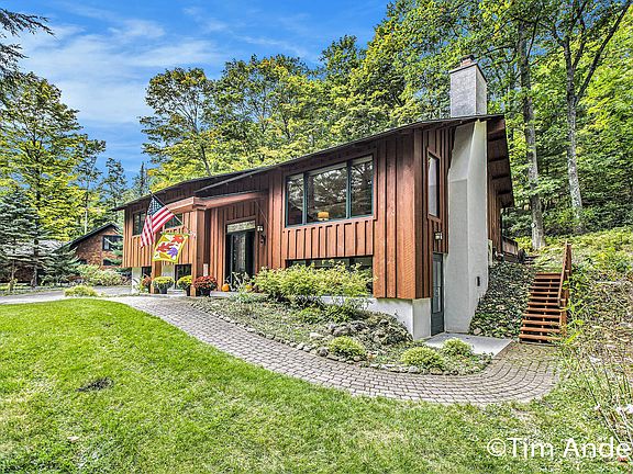Welcome to this beautifully updated 3-bedroom, 2-bath raised ranch tucked into an exquisitely private wooded setting in the desirable Whaleback area of Leland. With shared lake access to Lake Leelanau, this home offers a rare combination of tranquility, style, and convenience. Step inside to a dramatic great room with cathedral ceiling, bathed in natural light and anchored by a cozy fireplace—perfect for relaxing or entertaining. The kitchen has been fully redone, and both bathrooms have been tastefully renovated, blending modern finishes with timeless appeal. Downstairs, the walkout basement provides additional living space, recreation options, or room for expansion with seamless access to the lush grounds. The property sits on a serene, heavily wooded lot—ideal for nature lovers and privacy seekers. Enjoy boating, swimming, fishing, and sunsets from the nearby shore with shared access to highly sought-after Lake Leelanau. Located just minutes from Leland's charming Fishtown district galleries, restaurants, and the Leland River connecting to Lake Michigan. Nearby public recreation includes Clay Cliffs Natural Area, scenic shoreline trails, and numerous township parks. Sleeping Bear Dunes, Leelanau State Park, orchards, and vineyards are all within easy reach. This raised ranch in Whaleback offers the perfect mix of modern upgrades, outdoor living, and the coveted lakeside lifestyledon't miss your chance to call it home.