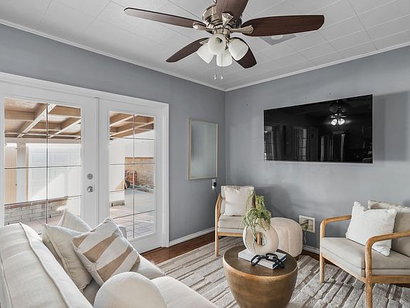 Timeless character meets modern livability in this Rolando Park home, where curved walls, original hardwood floors, and mountain views create a home full of warmth and personality. Tucked away on a peaceful cul-de-sac, midcentury meets timeless modern home. Large picture windows flood the main living area with natural light, highlighting beautiful original hardwood floors and creating an effortless flow between living, dining, kitchen to the outdoors. A distinctive curved wall anchors one corner of the living room, an architectural detail that adds character and a touch of mid-century artistry. The covered patio, easily accessed from both the living area and kitchen, extends your entertaining space outdoors and overlooks the expansive backyard framed by mature fruit trees (Lemon, Persimmon, Fig, Tangerine, Avocado) and mountain views, a serene retreat for relaxing mornings or weekend gatherings. The detached garage offers flexible use as extra storage, a creative workspace, or potential ADU conversion, while the dedicated laundry room and abundant storage room in home. This home provides rare practicality and convenience. Home has solar, forced air heating and central A/C, along with the convenience of a covered driveway for shaded, protected parking. Located in Rolando Park, one of San Diego’s most charming and centrally positioned neighborhoods, residents enjoy a true sense of community paired with easy access to all that the city has to offer. Just minutes from La Mesa Village, San Diego State University, and local favorites like Dark Horse Coffee, Mount Helix & Mission Trails, you’re close to both urban convenience and outdoor adventure. Whether it’s a morning jog through the neighborhood’s tree-lined streets, a weekend hike, or an evening dining al fresco at a nearby restaurant, Rolando Park offers the perfect blend of peaceful living and connected lifestyle. This home embodies everything people love about San Diego, sunlight, character, outdoor living, and a community that feels like home.