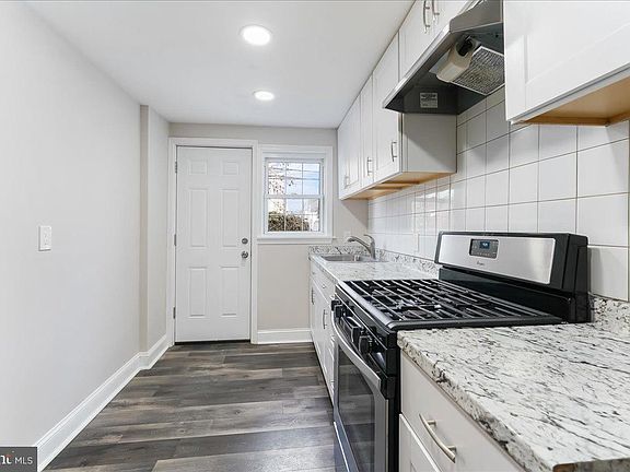A blank canvas to build your life upon, this home is bright and welcoming. Rounding the front of the house from the shared driveway is a flat slate patio leading you to the front door. This patio could be a lovely place to add your style to the curb appeal of an already charming home. Crossing the threshold into the ample open living space, you'll notice the flexibility of this bright living area. It can support a variety of layouts to meet the needs of any style of living. The recessed lighting and large windows help with the open feel. Two built-in arched shelves add a touch of unique design to the room. Through the living room is the dining room, and adjacent is the kitchen. With a door to the backyard, a window overlooking the back patio, modern white cabinets with sleek finishes, and complete with a stainless steel stove, this kitchen packs a design punch. The basement access from the kitchen makes catering to both living areas a breeze. Once you make your way downstairs, you may never want to come back up! Bold black beams, crisp marble-like floors, and a larger than expected living area greet you on the lowest level of this home. A half bathroom, laundry area, and extra storage line the edges of a space that can be molded to fit any lifestyle. On the second level, three bedrooms are situated among a full bathroom. The full bathroom has a marble aesthetic, a white vanity, and a bold black curtain rod, seemingly tying the design from the basement into the upper level. The bedroom at the front of the house is the largest, with three windows, and spans the width of the home. The two remaining rooms on this floor can offer a variety of uses beyond your typical guest bedrooms. Lastly, create an outdoor escape on the private rear patio. Easy access to the kitchen, driveway, and garage makes it the perfect place to let your stress-free evenings unfold.