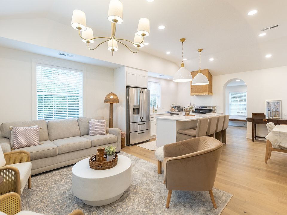 Step inside to find vaulted ceilings, natural oak flooring, and high-end Studio McGee inspired finishes throughout. The home comes fully furnished, including all essentials, making move-in seamless. Enjoy a bright and airy living space, an updated kitchen, and two spacious bedrooms with full bathrooms designed for modern living.