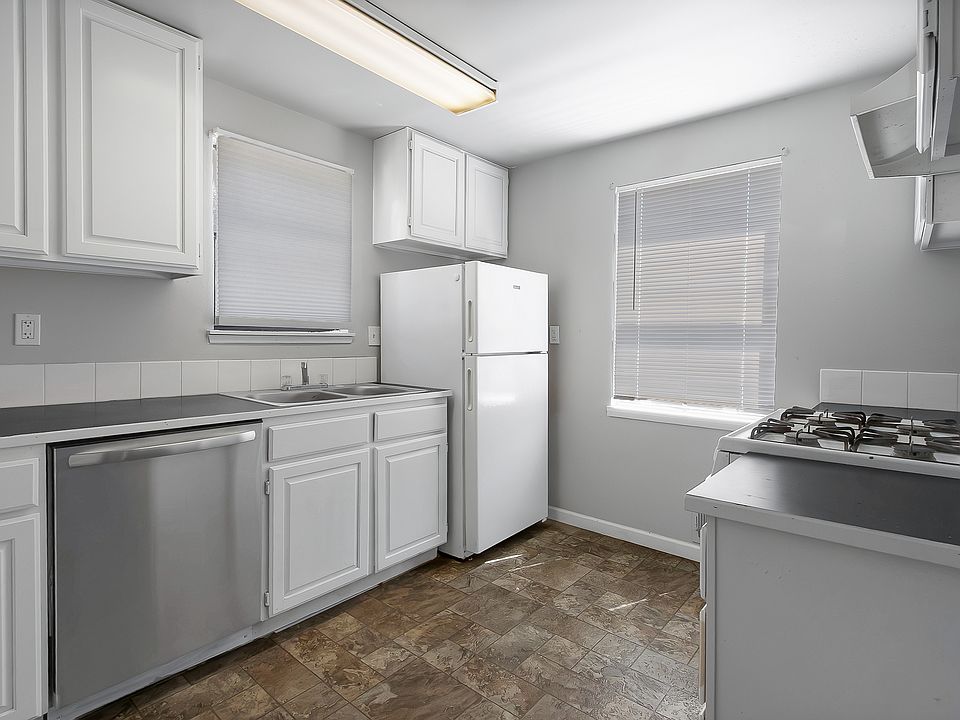 Modern kitchenUpdated appliancesAmple counter spacePlenty of cabinetryAdjacent dining areaFour well-sized bedroomsOpen-concept living space