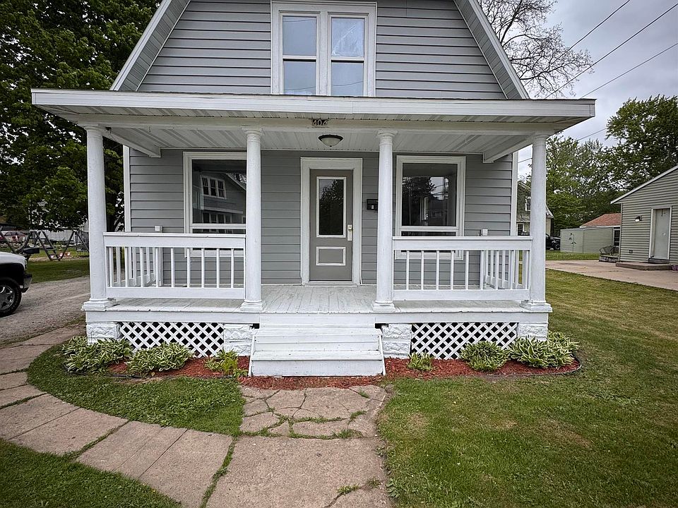 Just steps from downtown Waupaca, this charming 2-bedroom, 1-bathroom home welcomes you! The main floor features a spacious living area, a laundry room, and a nice-sized kitchen alongside a full bathroom. Upstairs, you'll find an additional bedroom featuring a large closet and a dedicated office space, perfect for those who work remote. Be sure to notice the numerous updates throughout, including new flooring, a modern kitchen countertop, and fresh paint. Relax and enjoy the outdoors on the covered front porch. Additionally, this property includes a detached two-car garage with storage space. Heating/cooling source is hot water.