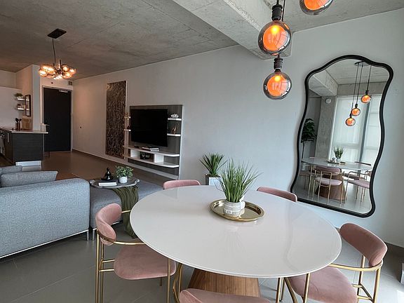 Step into this modern-chic 2-bedroom, 2-bathroom loft-style residence at Atlantis, where industrial design meets effortless comfort. With exposed concrete ceilings, curated boho-chic details, and floor-to-ceiling windows, this home blends urban edge with laid-back elegance.