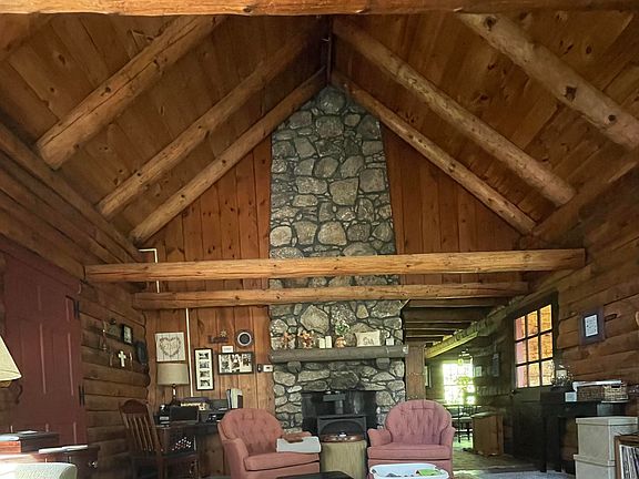 This log home is nestled into the hill in a great part of Loudon. On almost 8 acres, the current owner describes it as "magical", their need to relocate gives you the opportunity to snag it for your very own. With an abundance of wildlife and peace and quiet, your family will love this 3 bedroom, 2 bath home. There will be nights by the warm fireplace, cool evenings on the screened deck porch and beautiful days tending to the lawn and gardens. This stunning and energy efficient log cabin has been meticulously cared for and maintained - it needs absolutely nothing for you to move in! If you are looking for an inviting home with a gorgeous living room to entertain, look no further. There is ample storage and a semi-finished basement to use as an office, a game room or bring your own ideas. The one car garage is perfect for your vehicle or place to keep your toys. The portable generator is negotiable. Located close to Concord and the Lakes Region, you can enjoy the mountains, the beach or some outlet shopping. Spend your days wandering the trails on the property or sit on the porch and watch nature.