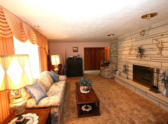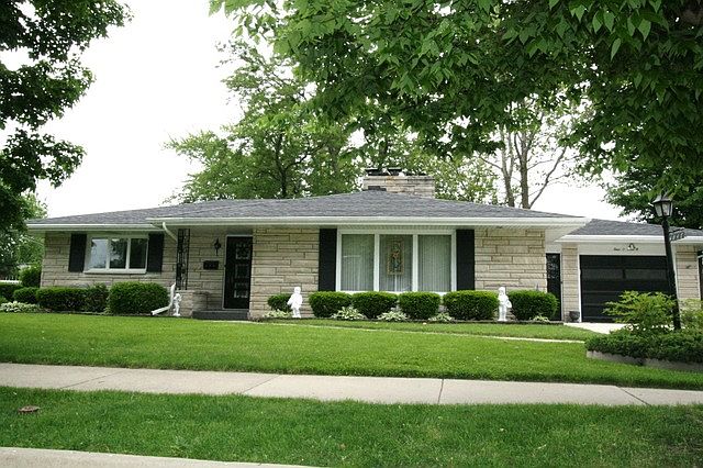 The never ending ranch: all stone exterior w/newer roof set on a beautiful tree lined street. Expansive living room w/fireplace & a family room offset from the eat-in kitchen w/another fireplace. 2 bedrooms share a full bath on the main level. The full basement finished w/rec. room area offers homes 2nd full bath. Private back yard w/patio + shed. Home in more or less original condition, but clean & excellent shape!