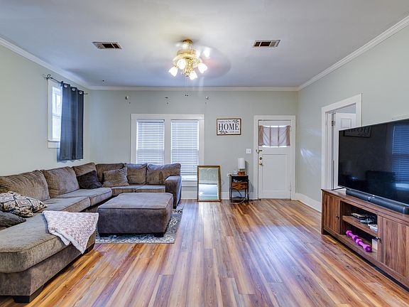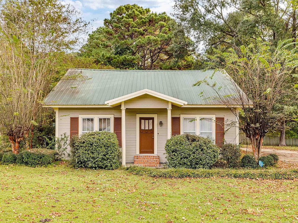 Charming home located in the heart of downtown, close to local shops and amenities with just a short drive to the larger city. A small front porch welcomes you inside to a spacious living room filled with natural light. To the left, you’ll find a large bedroom with a dark-stained wood ceiling, plenty of windows, an ample closet, and access to a convenient half bath. Just outside the half bath, the hallway leads to another comfortable bedroom and a full bathroom featuring a classic clawfoot tub, separate stand-up shower, and generous cabinet storage. At the end of the hall, the third bedroom offers two walk-in closets and plenty of space to unwind. Just off the living room, the dining area includes built-in bookshelves and French doors that open to the side of the home. The kitchen provides ample counter space, a walk-in pantry, and connects to the laundry room, which offers access to the fenced backyard. Outside, enjoy a workshop/storage shed perfect for hobbies or extra storage. This home blends vintage character with functional spaces — perfect for anyone seeking charm and convenience in a great downtown location!