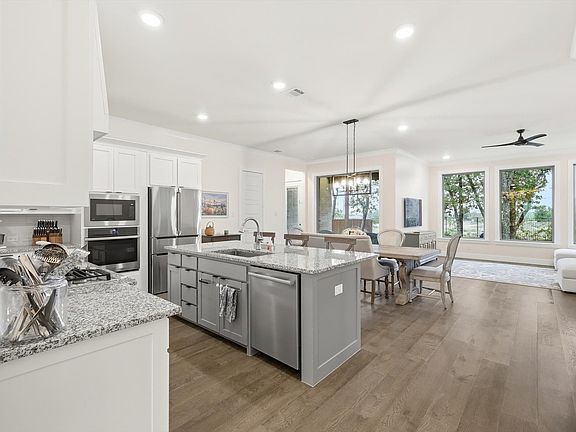 Large windowsSoaking tubSleek cabinetryGorgeous single-story homeOversized islandStunning kitchenGenerous dual vanities