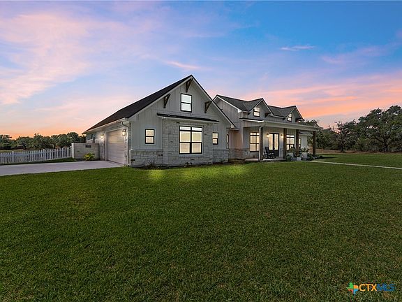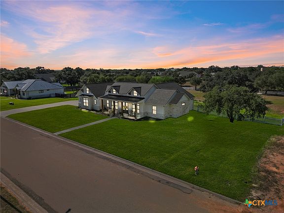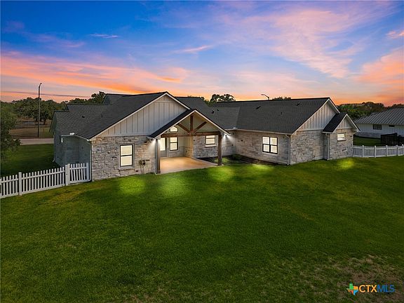 Luxury Living in Pebble Ridge – Double Lot with Oaks & Country Views. Immaculate board and batten & cream limestone home on a rare double lot, surrounded by stately live oaks and peaceful country views. Located on a quiet dead-end road with no neighbors across and city property behind, this property offers unmatched privacy and charm. White picket fencing, mature trees, and a welcoming covered porch create stunning curb appeal. Inside, soaring 10’ ceilings, French doors, and custom finishes elevate every space. The chef’s kitchen boasts Bosch & LG stainless appliances, quartz countertops, custom cabinetry, open shelving, vented hood, and a designer backsplash. Spacious Butler pantry with ample storage. The owner’s suite is a true retreat with spa-like bath featuring a freestanding tub, walk-in shower, double vanity, and expansive closet. Secondary bedrooms enjoy a Jack & Jill bath with upscale finishes. Additional highlights include an office nook, mudroom, ½ bath, Norman window coverings, and a 2-car side-entry garage. City utilities, trash service, and just 2 miles from schools.