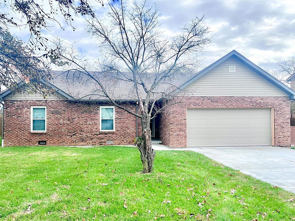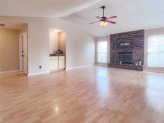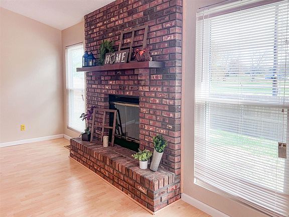 Freshly painted ranch home backing to golf course! Inviting covered entry leads into this bright and open home. Beautiful, vaulted ceilings in living room, with brick surround fireplace feature flanked with large windows overlooking backyard. Bonus bar/desk nook. Open to dining area with glass doors to covered back patio. Perfect entertaining space outside. Neutral finishes in kitchen with peninsula island, pantry, and wood cabinetry. Large primary bedroom with triple door closet and full bath. Two additional bedrooms share second bathroom. Laundry room off entry from two car oversized garage. Move in ready! Has Passed City Occupancy. Additional Rooms: Mud Room