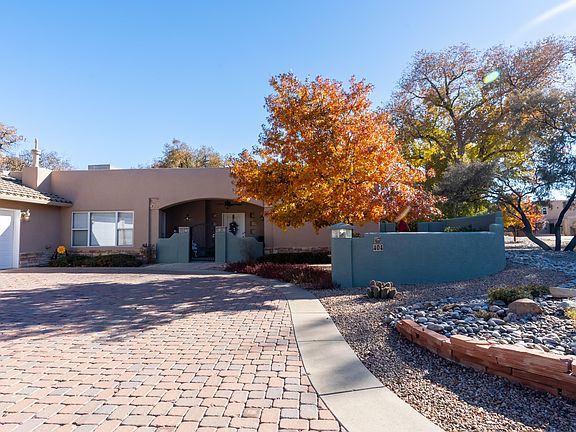 Incredible single-story home located in one of Albuquerque's hidden gem neighborhoods. This exceptional single-story home offers four bedrooms, three bathrooms, great room with gas fireplace, formal dining room, breakfast nook and fully landscaped front/backyards. Paver driveway, walled front courtyard with wrought iron gate, two refrigerated A/C units, boiler system, holding tank and one water softener, TPO roof on flat portion, renovated primary bathroom with separate shower, Kohler walk-in bathtub, double vanity, and extended backyard patio are some of the updates completed by current homeowners. Enjoy this park like community only minutes from Albuquerque Old Town, restaurants, museums, bike path, bio-park and much, much more.
