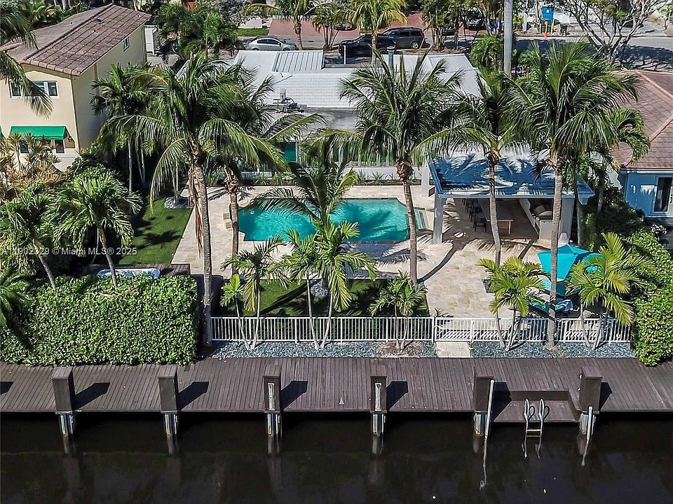 Best priced 75Ft waterfront paradise on Las Olas, in move-in condition! Fully equipped dock w/power station (220V) on 90ft canal width. Fits 65Ft boat. No fixed bridges & just minutes to the Inlet. This 3 bedroom,3 1/2 baths waterfront home is completely remodeled w/open floors, impact windows & doors, a fireplace & equipped w/ smart home system. Large master bedroom w/own seating/office area featuring electric shutters, large closet & built-in cabinetry. Spectacular summer kitchen built in 2014 overlooking the pool & water offers all amenities for outside entertainment w/gas stove, Kamado ceramic grill, infrared grill & more. Pool w/fountain & hot tub and outside cabana bath for guests. Also avail. furnished.