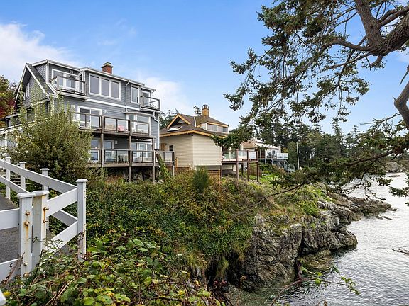Welcome to ocean front living at ORCA House. Come and enjoy the expansive ocean views from this gorgeous 1925 character home, which has been fully restored from the roof top to the basement. This beautiful home has a lovely fenced garden with one car garage. To the left of the heated tile entryway is a large bedroom with 3 piece bathroom and a mud room. To the right is a formal dining room with gorgeous fir floors with decorative inlays and wainscotting and on the back, west-facing ocean front is a fully updated kitchen with heated tile floors and original sideboard as well as all new appliances opening up to a west-facing deck plus a large living room with fireplace, original fir floors, and picture windows of the ocean. Upstairs is the large primary with walk-in closet, sumptuous ensuite bath and private deck as well as a second full bathroom, two ocean-view bedrooms, plus laundry. Downstairs is a large self contained 1 bed suite, with private deck and views, and basement storage