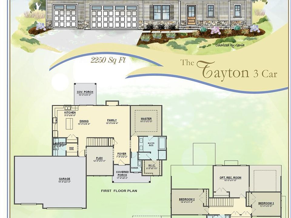 Welcome to the Tayton Plan—one of our newest designs offered in the sought-after Creeks Edge community! This beautiful home features a spacious THREE-CAR GARAGE and a thoughtfully designed open layout perfect for modern living. Step inside through the inviting foyer that opens to a large Family Room with a cozy fireplace and mantle. The open-concept design flows seamlessly into the Dining Area and a stunning Granite Island Kitchen complete with a Pantry—perfect for entertaining or everyday comfort. The main-level Owner's Suite offers a luxurious retreat with a Dual Granite Vanity, Soaking Tub, Separate Walk-In Shower, and a Large Walk-In Closet. Upstairs, you'll find two additional Bedrooms, a Full Bath, and a versatile Rec Room that can easily serve as a Fourth Bedroom. Additional highlights include a convenient Half Bath for Guests and Covered Front and Rear Porches ideal for relaxing or hosting gatherings. Experience the perfect blend of style, comfort, and functionality—your dream home awaits at Creeks Edge!