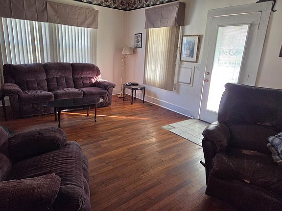 Now priced below appraised value! This charming 1.5-story farmhouse, nestled within city limits, boasts over 2,400 sq. ft. of living space. This inviting home has 4 bedrooms, 2 bathrooms, and a partial basement, providing ample storage and expansion possibilities. The large, flat yard is perfect for outdoor activities, gardening, or entertaining guests. Inside, you'll find an eat-in kitchen and formal dining room—ideal for family meals and gatherings. A versatile bonus room awaits your personal touch—perfect for sewing, reading, crafting, or a home office. Upstairs, there's a sunroom (not included in the square footage) that offers a relaxing retreat with plenty of natural light. The home features hardwood floors in the living and dining rooms, adding charm and warmth. While the house is in need of updates, it's a great opportunity to create a customized space. The original home was built around 1950, with an addition added in 1997. The property also includes a detached two-car garage and a two-room storage building, providing even more storage options. If you're looking for a generous sized home with a large yard in a convenient location, this one is for you! Don't miss the chance to make this charming property your own!