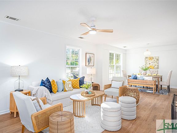 Discover this open and airy gem in Midtown Savannah, fully renovated for modern living. A welcoming facade leads to a bright interior with hardwood floors and large windows. The efficient layout includes a cozy living space, a dining area with a stylish pendant light, and a sleek kitchen with stainless appliances. The bedrooms promise restful nights, and a chic bathroom adds elegance. Outside, enjoy a detached garage with alley access, perfect for privacy and convenience. Your Savannah haven awaits!