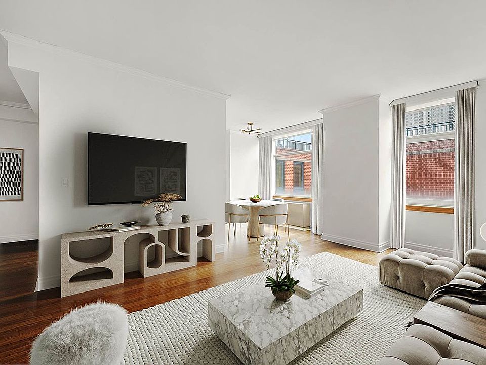 Upon entering this sun drenched home is a large proper foyer that flows into an open concept living and dining space, perfect for entertaining. The sun-filled bedroom is a serene retreat, comfortably fitting a king-size bed and featuring custom-built California closets. Leaving nothing to be desired, 7D boasts new stunning oak floors, stainless steel appliances, ample closet space, and a washer/dryer.