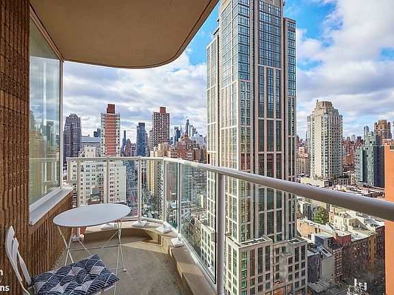 Welcome to 404 East 79th Street, Unit 21B, a stunning condo in the heart of the Upper East Side. This elegant one-bedroom, one-bathroom residence spans approximately 680 square feet and is situated on the 21st floor with unobstructed city and skyline views from all the rooms and its private balcony. This lovingly maintained unit is in excellent condition and features an open kitchen with stainless steel appliances, living/dining area and well proportioned bedroom. With southern and western exposures, the condo is bathed in natural light, providing a warm, inviting atmosphere throughout.