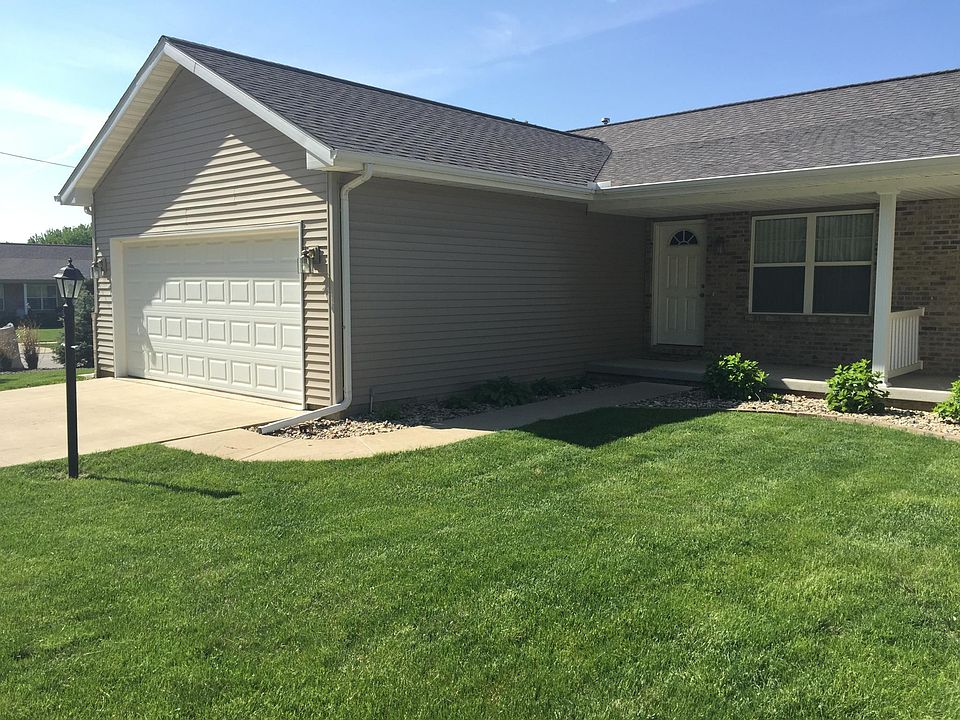 Amazing Single Story Duplex! 2 Bedrooms, 1 Bath, 937 sqft! Full Unfinished Basement, Providing Lots Of Extra Storage Space Features Spacious Dining Room And Vaulted Ceilings! Refrigerator, Stove/Oven, and a Dishwasher! Washer/Dryer Hookups In Your Own Home! Central Air; Cable And Phone Hookups! Blinds On Windows And Patio Door For Your Privacy! Private 2 Car Attached Garage With Remote Controls And Keypad! Cozy Front Porch, And Spacious Wood Deck to Back Yard! Lawn Maintenance And Landscape Care Is Included! No Smoking. Cats allowed, $25/pet monthly pet fee. No Smoking. Pets allowed, $75/dog, $50/cat monthly pet fee. Lawn care included in rent.